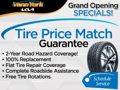 Disclosures: Please present coupon during write-up. No cash value. Some restrictions may apply. Not to be combined with any other discounts. Matching tire quote must include mount, balance, taxes and disposal fee. All Vann York Auto Group locations offer complimentary tire rotations for the life of the tires PLUS road hazard coverage, roadside assistance and tire warranty. Coverages and tire warranty vary by brand. See your service advisor for details.